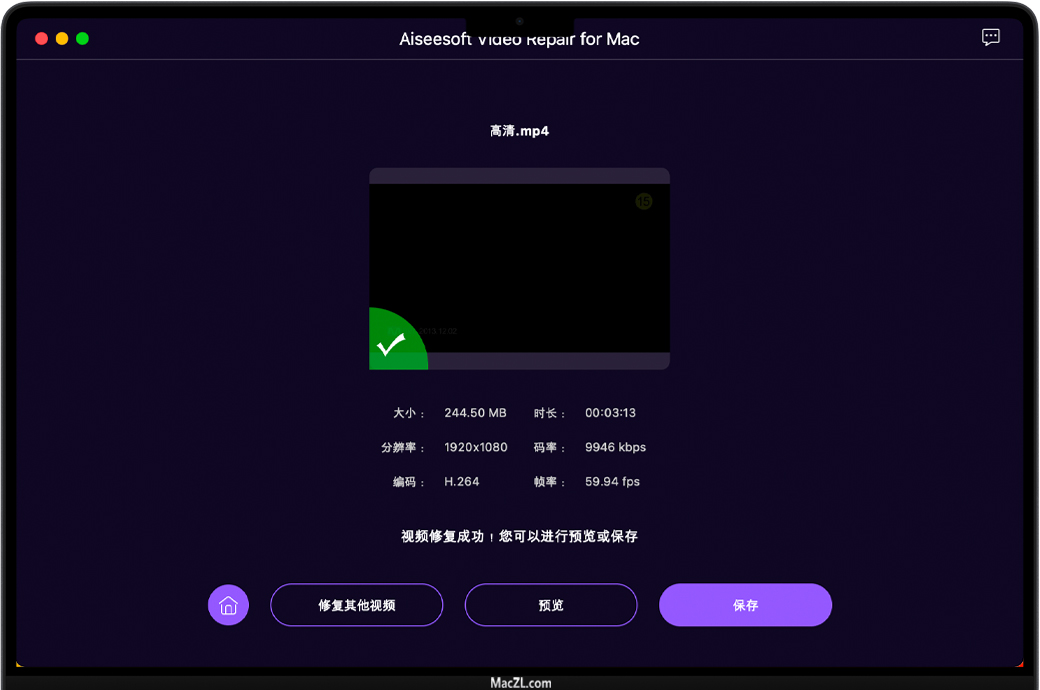 Aiseesoft Video Repair for Mac 是一款功能强大视频修复程序,可以帮助恢复丢失或损坏数据的视频。只要您提供相同格式的样本视频,在强大技术的支持下,只需点击几下就可以收获没有任何缺陷的视频。Aiseesoft Video Repair可以修复各种视频文件格式,包括MP4,MOV,AVI,MKV等。使用先进的算法来扫描和修复损坏的视频文件。Aiseesoft Video Repair可以修复各种问题,如视频播放错误、帧丢失或失真、音频同步问题以及其他常见的视频文件损坏问题。
