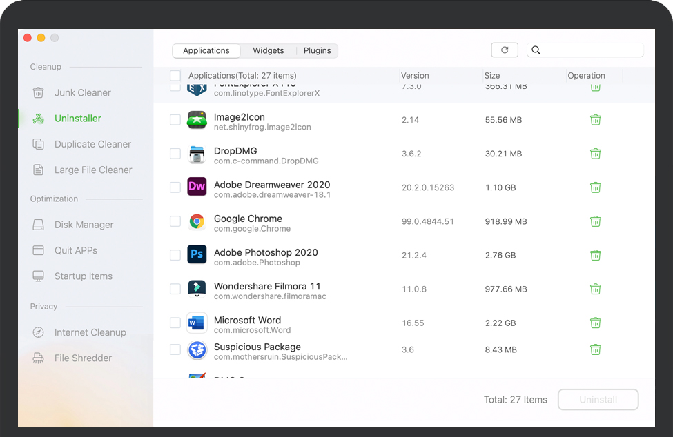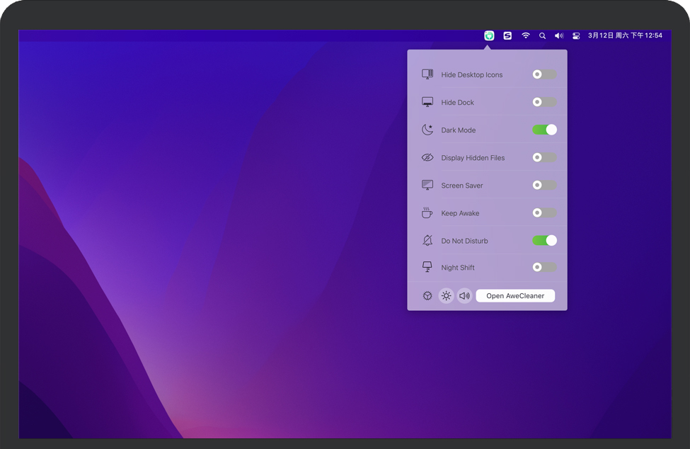 AweCleaner for Mac 不仅是一款功能强大的清洁器,它还提供其他8种工具来帮助您优化、加速和管理您的Mac电脑。AweCleaner不仅可以帮助Mac用户轻松快速地清理所有垃圾文件,还可以卸载应用程序、查找/删除大文件、查找/删除重复文件、释放内存、管理硬盘等。AweCleaner清理软件还可以通过永久粉碎数据来帮助清理互联网痕迹。该软件非常容易使用; 界面干净简洁。