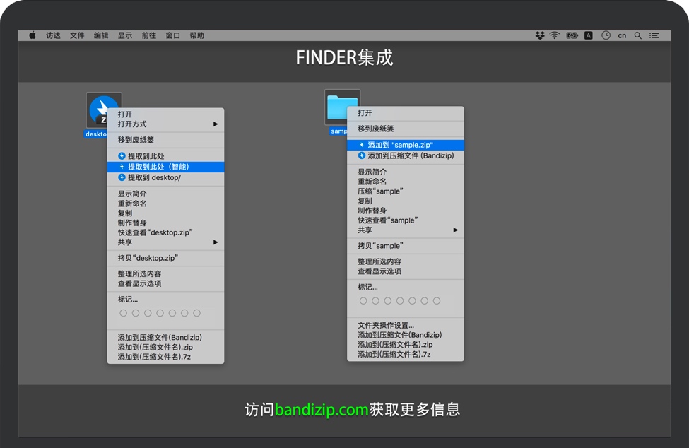 Bandizip for Mac 是一款轻量级、快速且整合程度较高的解压缩软件!因其功能强大界面简洁无广告。最大的亮点是集成到Mac资源管理器的右键菜单,界面纯净。Bandzip for Mac具备非常快速的压缩与解压缩算法,支持鼠标拖拽操作以及多线程操作。