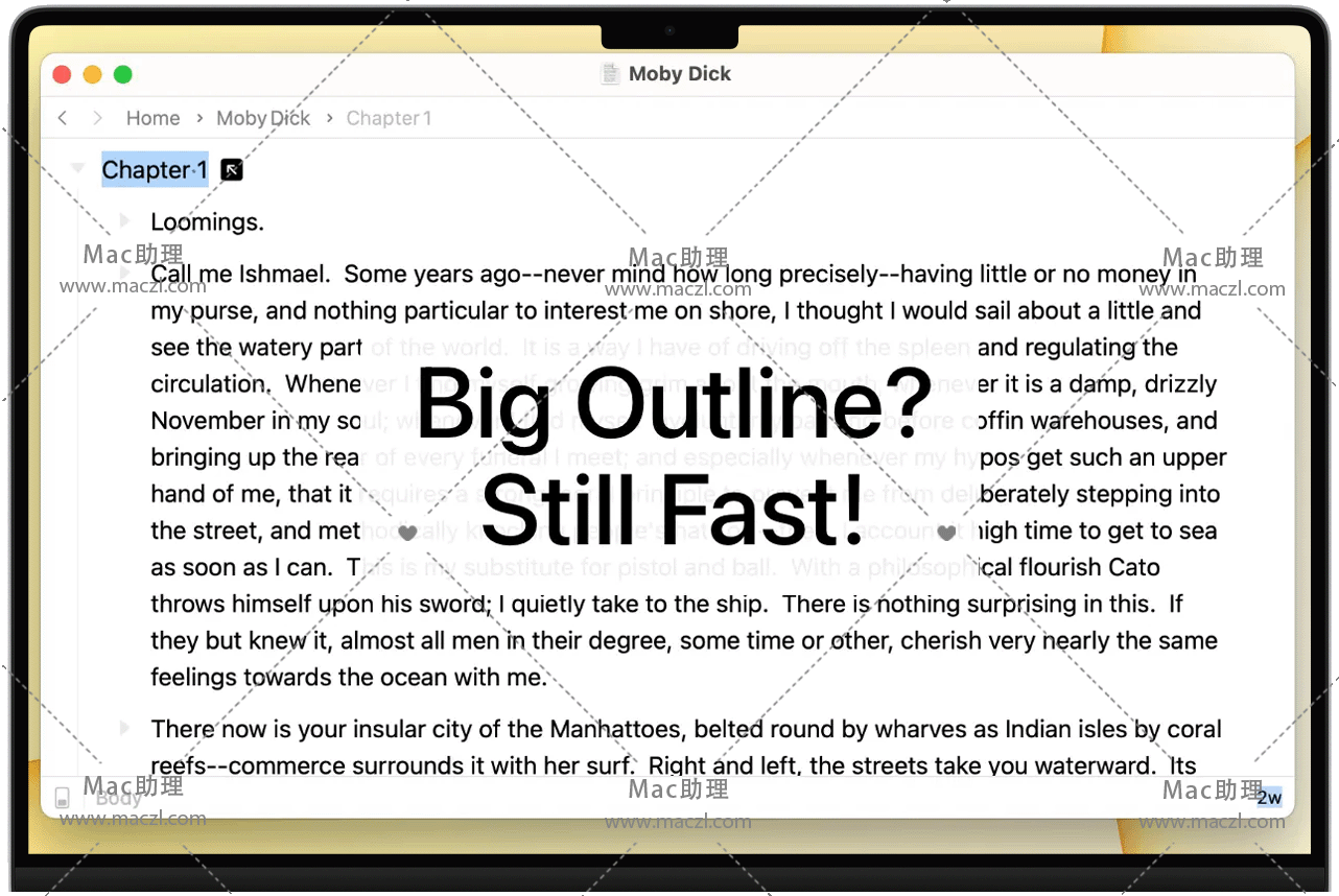 您可以将大纲功能与文本编辑器的灵活性相结合。