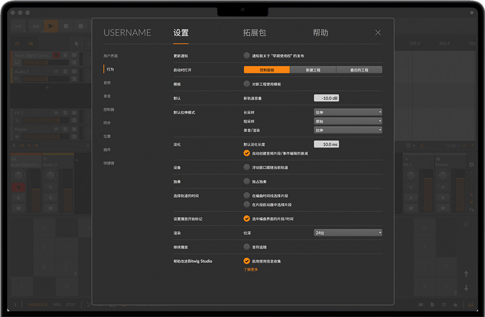 Bitwig Studio现在已本地化为中文、日文和德文。界面保持不变,但功能、标签和应用程序内文档(包括我们300多个设备和模块的交互式帮助)可以用其中任何一种语言显示。