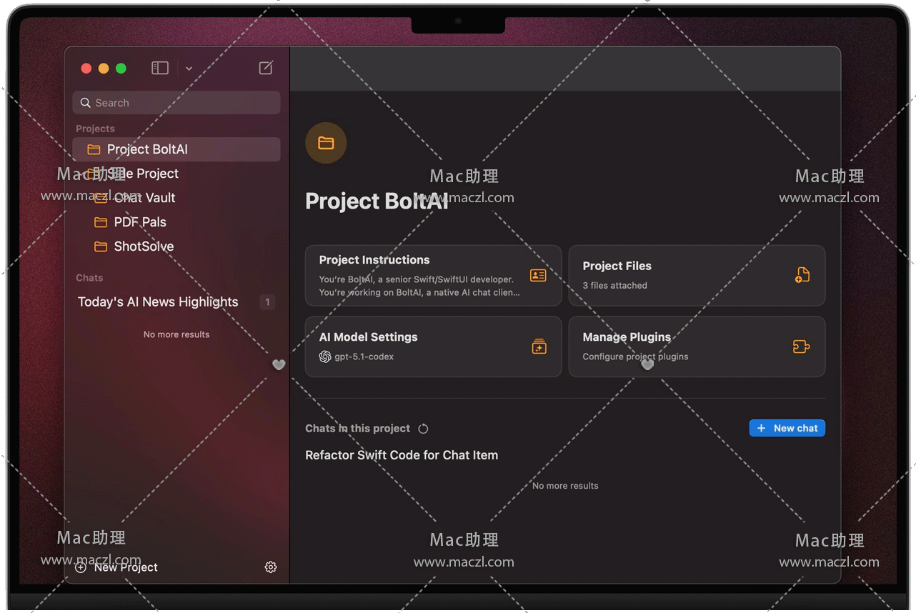 BoltAI 将专业工具、高级模型、结构化工作流程和深度自定义功能整合在一起——所有这些都融入到简洁、原生的 Mac 体验中,专为速度而打造。