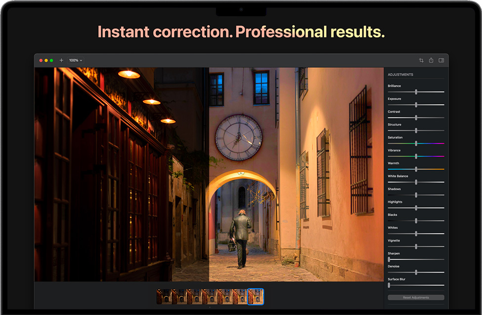 控制住Brightly 很简单,效果立竿见影,但当您需要更多控制时,它还包含强大的调整功能。 | 专业版功能RAW、4K视频和批处理只是使Brightly Pro成为专业人士的完美工具的开始。 |