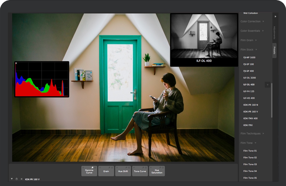 胶片模拟:可以分层和调整超逼真的胶片颗粒和相机效果以匹配任何物理胶片/相机
