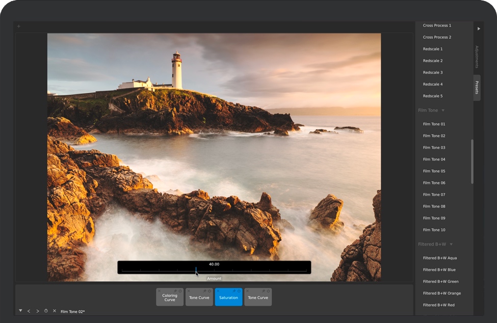 独特的曲线工具、调整重新排序和分层以及大型精确控件让您可以做在其他流行软件中根本无法做的事情。