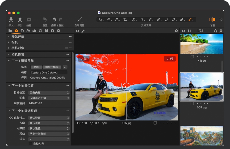 Capture One Pro for Mac 是一款功能强大的RAW图像处理软件,是RAW图片处理软件行业软件中的领先者!Capture One Pro 配备了功能强大的RAW图像转换器,能够呈现精确的色彩并显示最细微的细节,而且通过使用元数据工具,您可以查看编辑metedata信息,甚至可以使用元数据来控制图像搜索范围。而且 Capture One Pro 还可帮助您调整和增强图像,改变曝光和清晰度。