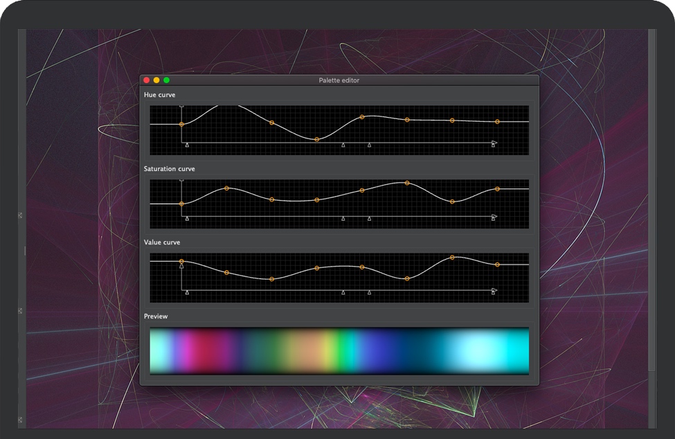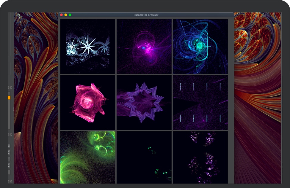新手用户可以编辑其中包含的示例以及随机生成的分形,从而轻松生成绚丽的高清分形图像。