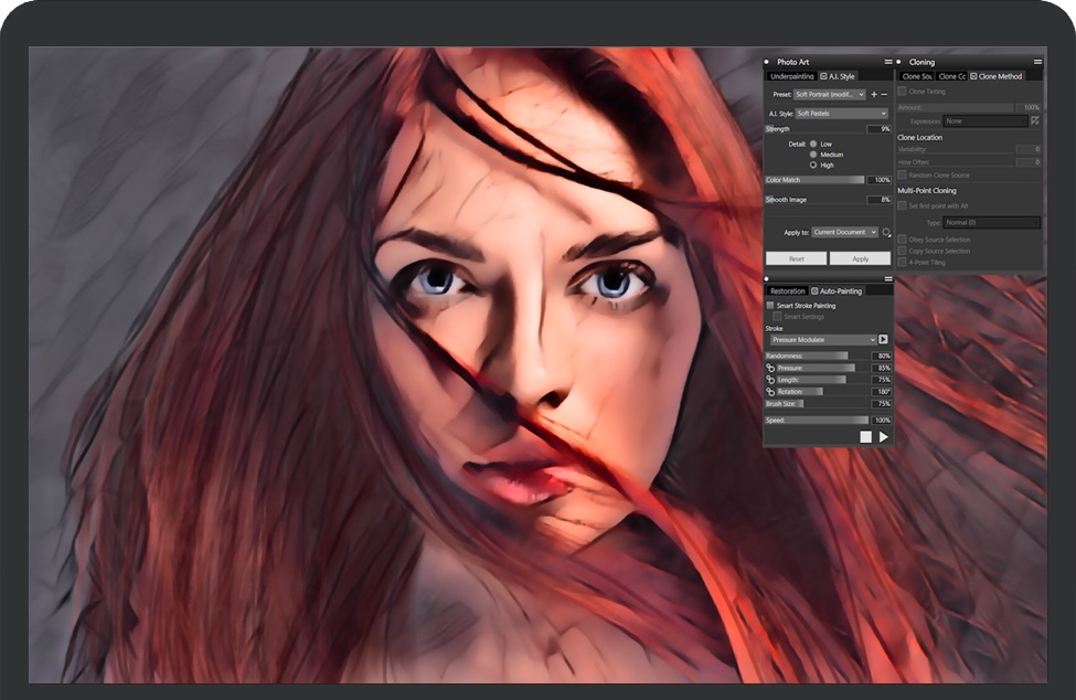 •人工智能样式和照片预设,可快速将图像转换为绘画