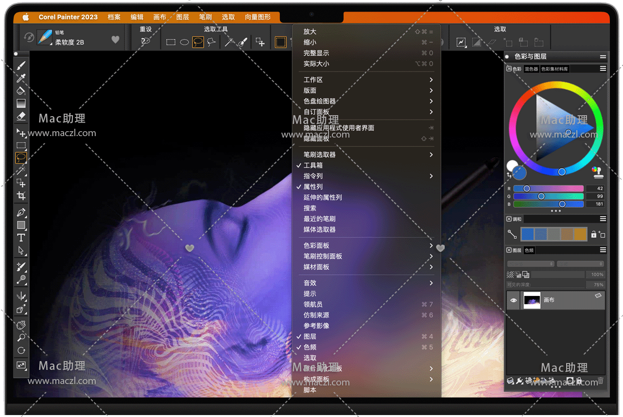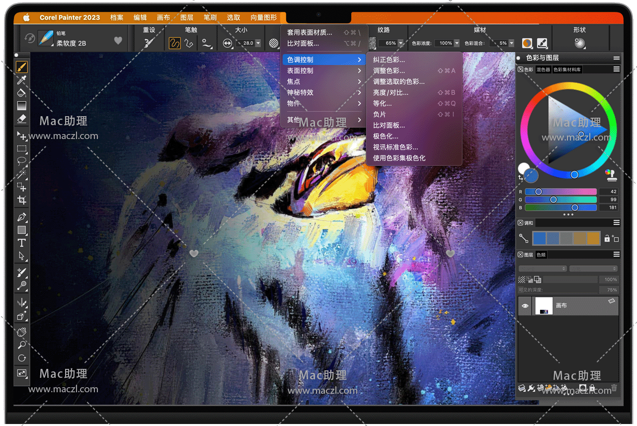 Corel Painter 2023 for Mac 是一款专业艺术家信任的数字艺术和绘画软件,利用全球数字模拟最强大精致Natural-Media功能扩充您的艺术创作实力。使用Corel Painter 专业数字艺术软件,踏入充满无限可能的世界。使用数百种无可挑剔的逼真艺术家创作画笔、卓越的混合和一系列多功能艺术工具,素描、绘画、插图和制作无与伦比的照片艺术。