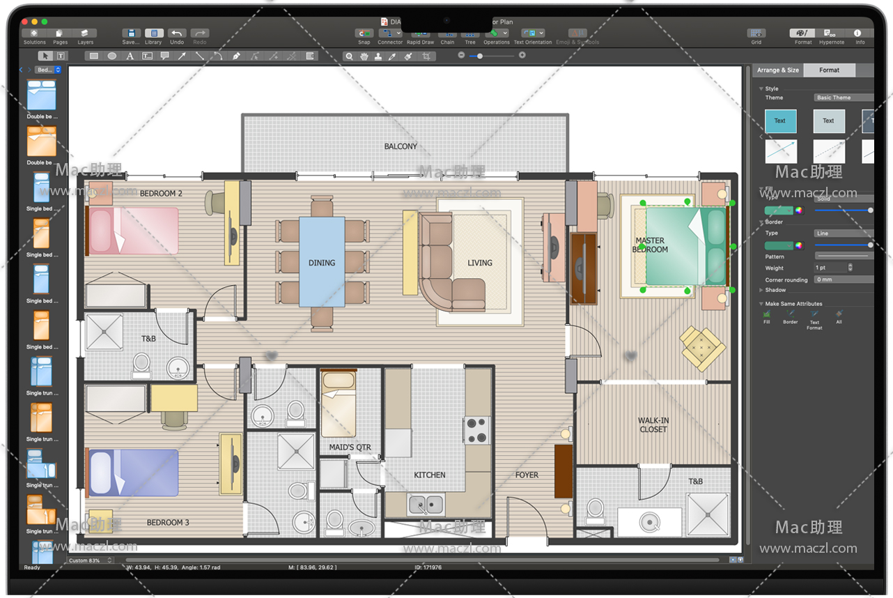 ConceptDraw DIAGRAM 16是一个专业的工具,可以想象您的蓝图、建筑和平面图;适用于家庭、商务中心、餐厅、商店或办公室布局。