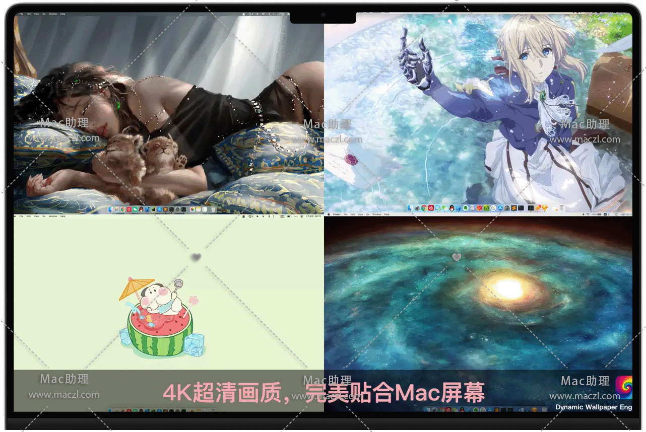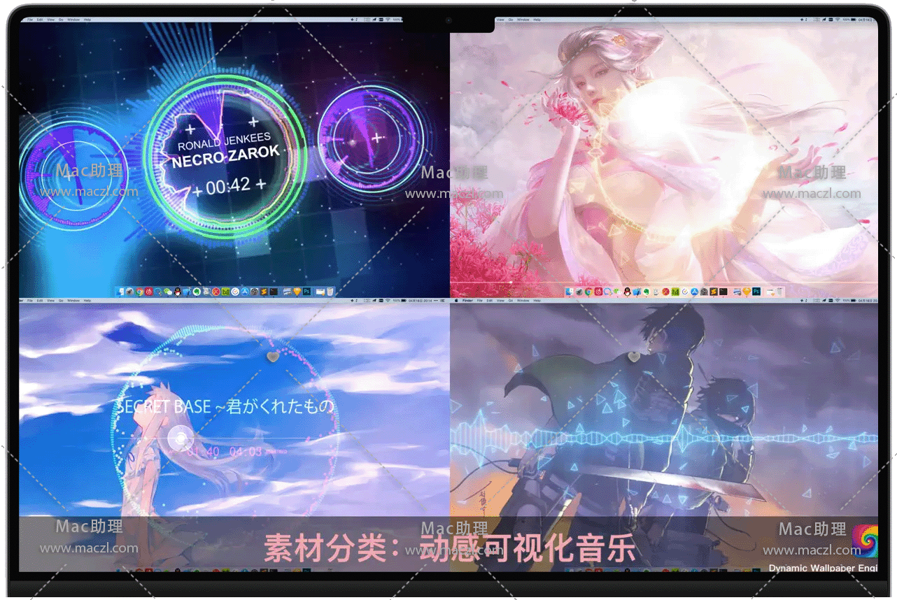 Dynamic Wallpaper Engine for Mac 是一款适用于苹果电脑的视频动态壁纸,告别单调的静态壁纸,拥抱活泼的动态壁纸。内置在线视频素材库,同时占用尽可能少的系统资源。一键下载应用,也可导入本地视频,同时可以将视频设置为您的电脑屏保。Dynamic Wallpaper允许您在桌面/屏幕保护程序上使用实时壁纸。