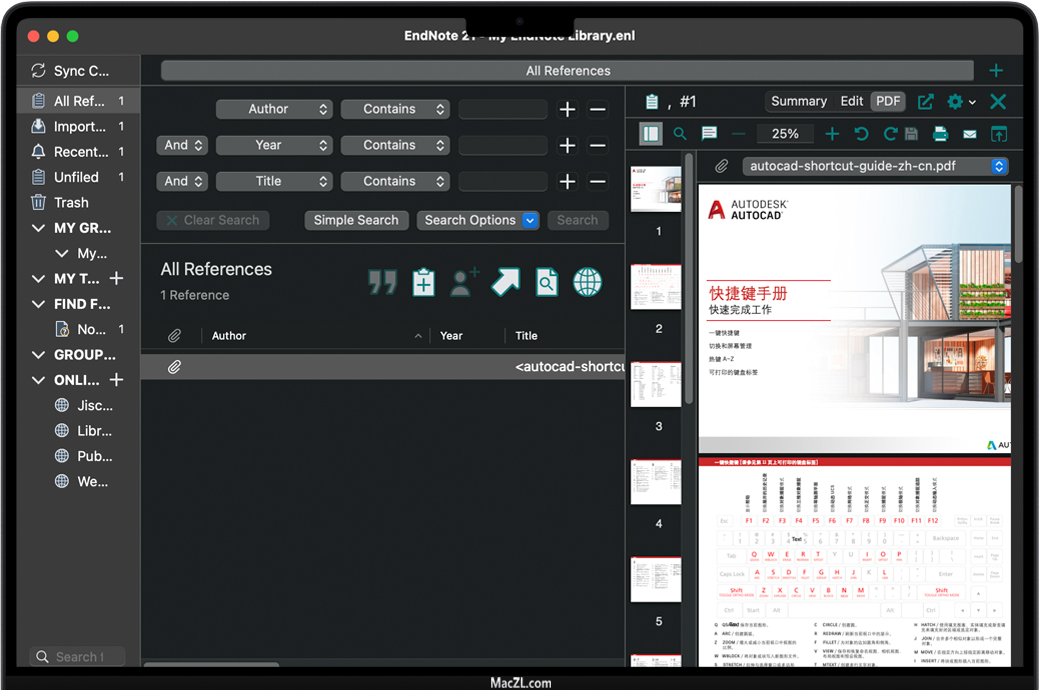 EndNote for Mac 是一款参考文献管理器,可帮助您节省设置引用格式的时间,从而专注于研究。有了 EndNote 21,您可以利用标签等功能提高工作效率,保持井然有序。数据恢复功能可以保护您的工作成果,让您高枕无忧;而集成到 Google Docs 的文档创建工具则可以改善您的写作工作流程。