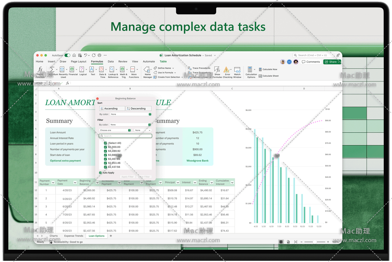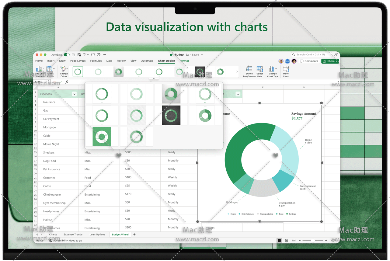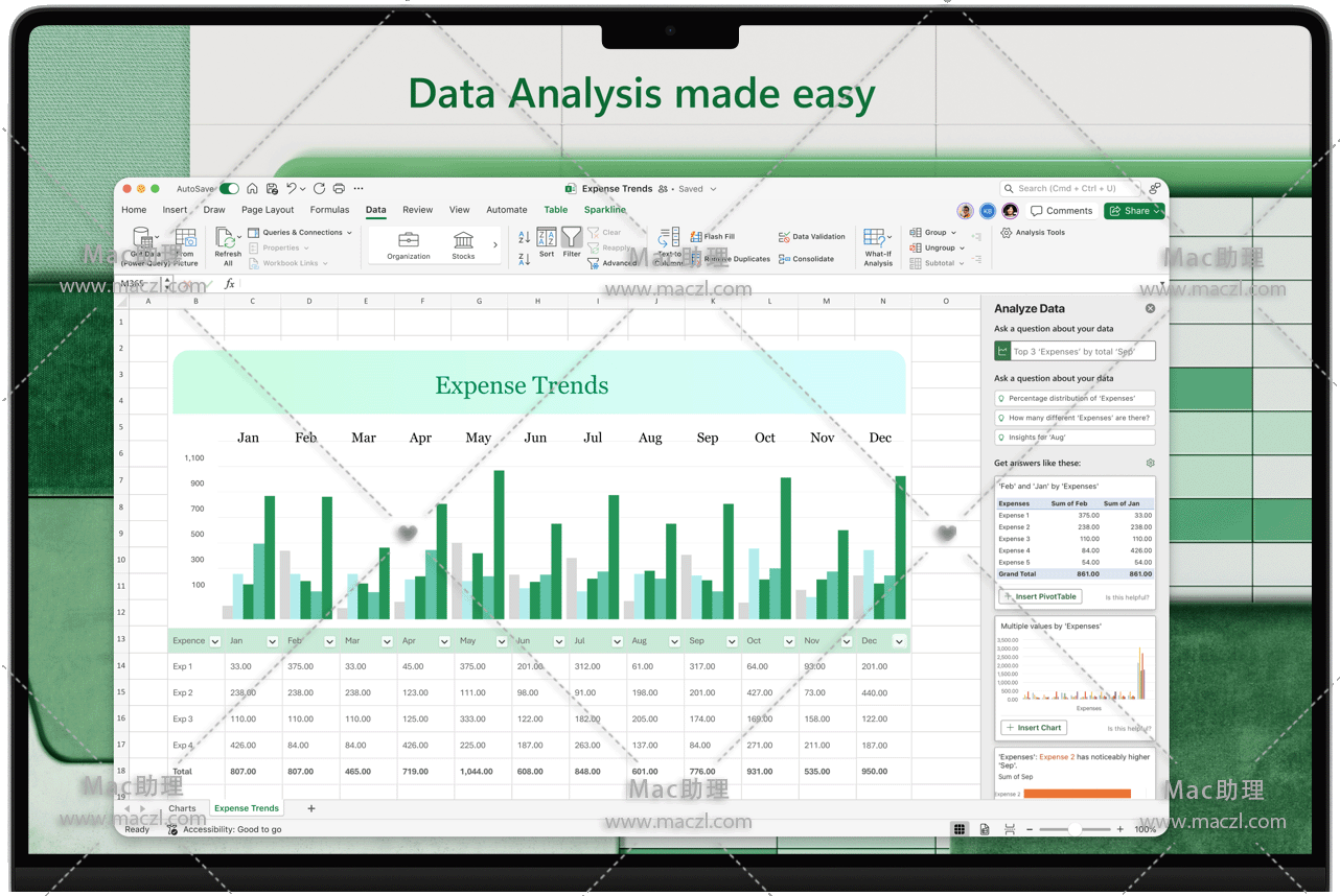 使用 Excel for Mac 创建、查看、编辑和共享电子表格。现在,在不同设备上以及与他人协作处理电子表格比以往任何时候都要容易得多。在文档中共享文件并实时协作,或编辑附加到电子邮件的 Office 文档。Word、Excel 和 PowerPoint 中发布智能辅助功能后,你能立即获取这些功能,从而确保始终使用最新功能。无论是要平衡预算、跟踪里程碑,还是要可视化任何数据,Excel 都是处理电子表格的首选应用。
