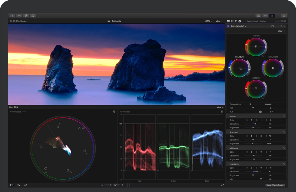 •用于精确调整抠像和遮罩的强大色轮和曲线