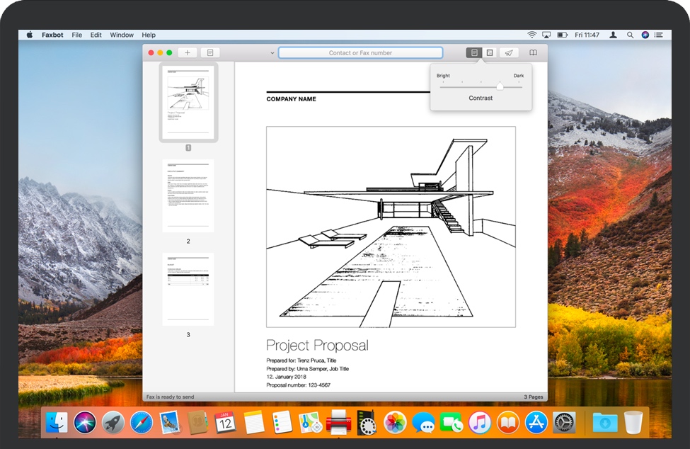 如果要将现有的PDF,PNG或JPEG文件作为传真发送,请将其方便地拖到Faxbot停靠图标或主窗口上。当然,您也可以使用Faxbot中的打开对话框。