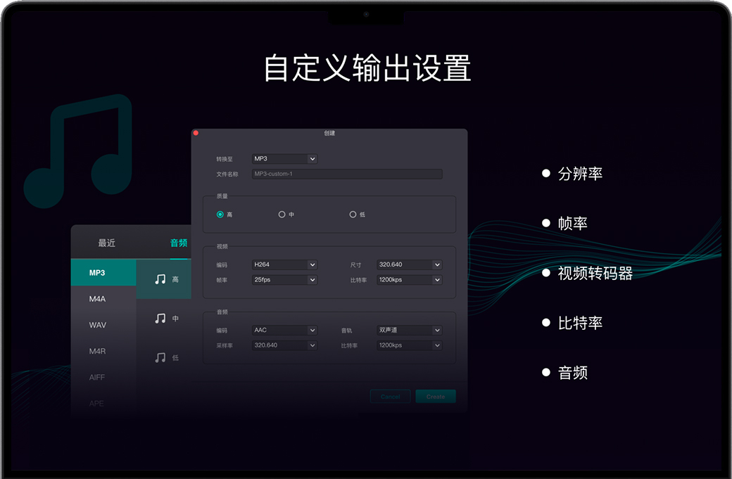 视频到音频转换器音频转MP3 / WAV / AAC / FLAC转换器视频编辑器-编辑视频多样的输出设置易于使用的视频转换器直观简洁的界面 直接拖放文件 自定义输出文件夹 一键转换和编辑文件