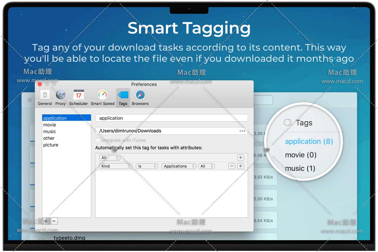 可以在Folx中为任何下载分配一个标签或多个标签。