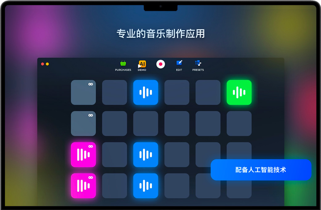 用Loop Mash Up制作专业音乐。这个应用程序是一个强大的采样器,有大量的循环和预置。