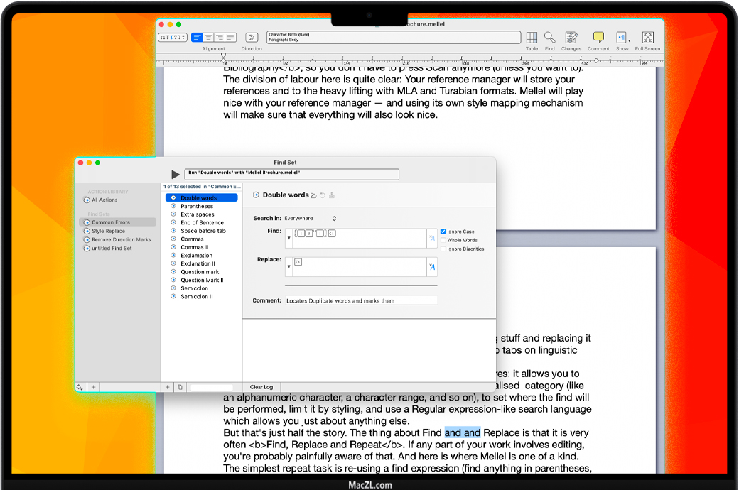 Mellel 6 for Mac 是一款强大的文字处理工具,它可以处理所有较长篇幅的书面作品,无论是论文,手稿还是小说。Mellel为您提供了编写过程各个方面所需的控制权:大纲,脚注,参考书目,样式等。从最初的想法到最终的手稿,Mellel使您可以在整个过程中使用一个可靠的工具:您所要做的就是编写它。