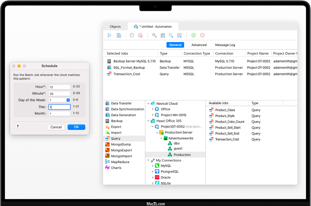 Navicat Premium for Mac 是一款数据库开发工具,可让您从单个应用程序同时连接到 MySQL、MariaDB、MongoDB、SQL Server、Oracle、PostgreSQL 和 SQLite 数据库。与 Amazon RDS、Amazon Aurora、Amazon Redshift、Microsoft Azure、Oracle Cloud、Google Cloud 和 MongoDB Atlas 等云数据库兼容。您可以快速轻松地构建、管理和维护您的数据库。