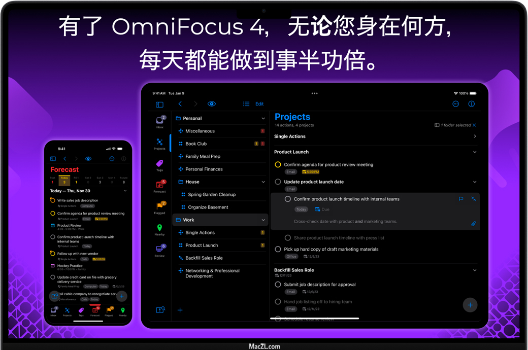 OmniFocus通过强大的功能帮助您将混乱转化为有序比如预测、项目和标记。