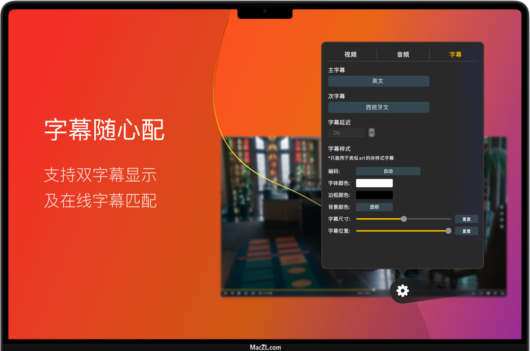 大小尺寸,播放速度,对比度,音轨,字幕切换,各种全面的实时视频画面调整