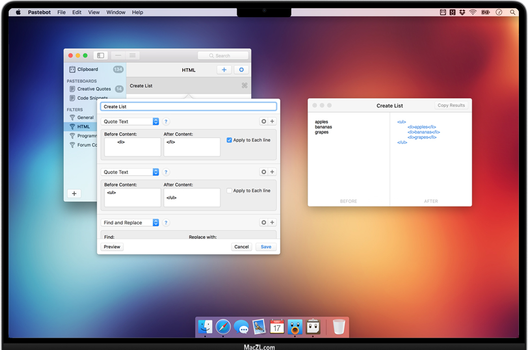 Pastebot for Mac 是一款历史剪贴板工具,如果复制和粘贴是您工作流程的一部分,Pastebot是提高生产力的必不可少的工具。快速调用您之前复制的剪辑,并在粘贴之前应用功能强大的文本过滤器进行格式化。您甚至可以排队多个副本以按顺序粘贴。Pastebot始终处于运行状态,只有键盘快捷键可用于命令复制和粘贴。