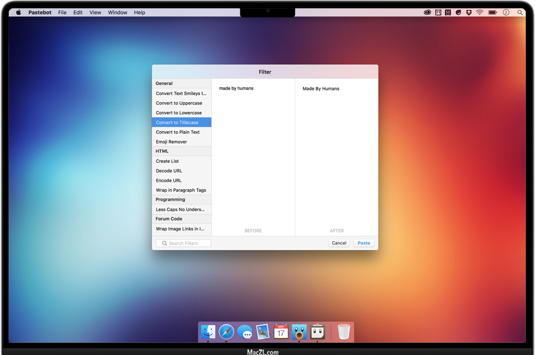 使用实时预览构建功能强大的过滤器,并在粘贴时应用它们。创建键盘快捷方式以使用您的过滤器快速粘贴并导出过滤器以与其他Pastebot用户共享。