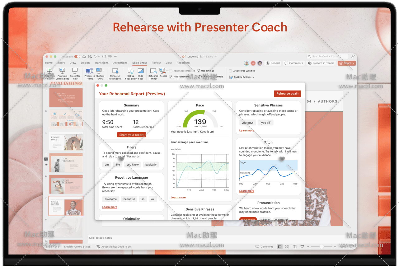 使用 PowerPoint for Mac 创建、编辑、协作处理和共享演示文稿。现在,在不同设备上以及与他人协作创建、编辑和共享演示文稿比以往任何时候都要容易。在文档中共享文件并实时协作,或编辑附加到电子邮件的 文档。Word、Excel 和 PowerPoint 中发布智能辅助功能后,你能立即获取这些功能,从而确保始终使用最新功能。无论你需要展示学校项目、商业计划还是家庭度假照片,PowerPoint 都是用于演示的首选应用。