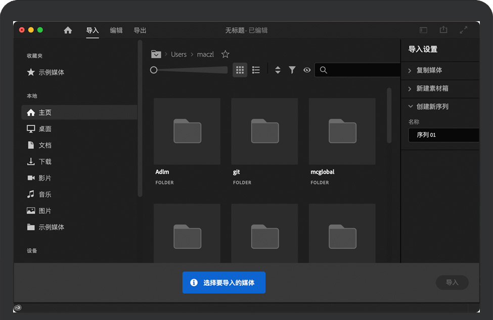 Frame.io集成现已内置于Premiere Pro和After Effects中,Frame.io for Creative Cloud为您提供实时审阅和审批以及云媒体共享。 | 相机到云端新工作流程包含在Frame.io for Creative Cloud中,用户可借此将相机文件直接发送到Premiere Pro,以便在制作的同时开始编辑工作。 | 重新设计的导入新的导入模式提供了一种可视化、直观的方式创建视频项目和收集媒体。从媒体开始,而不是项目设置。选单个资源并单击“创建”以将其导入到时间轴上。 |
