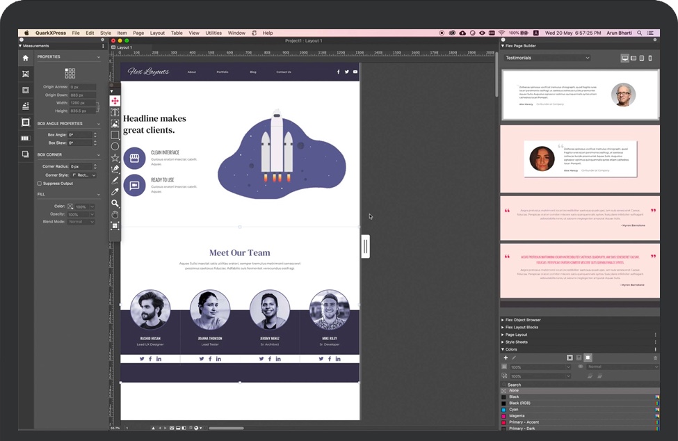 作为创意专业人士,QuarkXPress 让您的图形设计和数字出版成为无限可能。凭借其强大的页面布局、图形和插图以及照片编辑的集成工具,您可以出色而高效地将您的想法变为现实。然后您可以通过网络发布和移动应用程序发布功能与他人共享它们。
