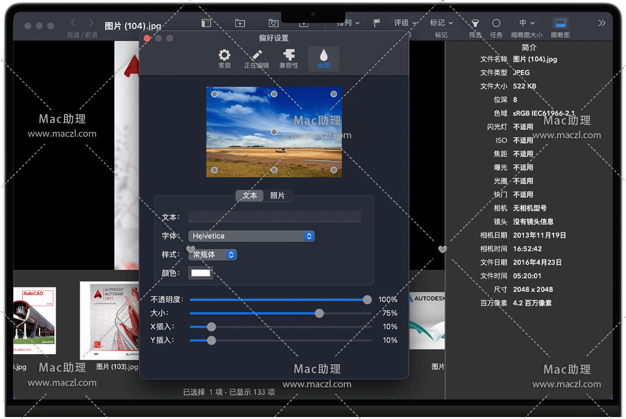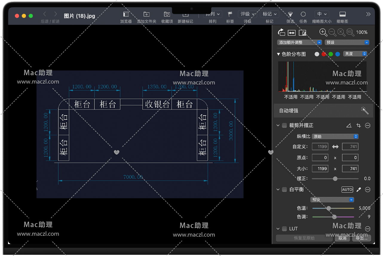 • 批处理:应用预设、粘贴调整,以及导出照片。一次性对多张照片应用自动增强或自动白平衡。