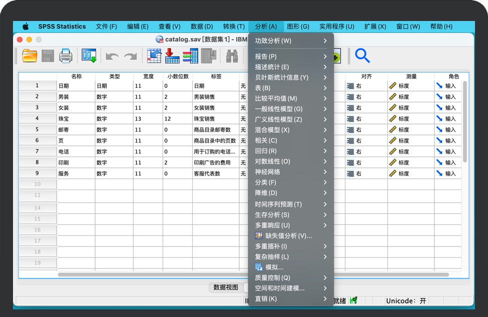 使用集成界面运行高级和描述性统计、回归等。此外,您可以通过语法自动执行常见任务。