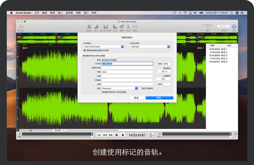 Sound Studio 是一款简单易用的苹果机应用程序,可用于在计算机上录制、编辑和制作数字音频。Sound Studio 可用于实现磁带和黑胶唱片的数字化,为现场演出录音,使用淡入淡出功能制作您自己的混音,调整音量及平衡,添加数字化效果以及用各种主流文件格式保存音频。!