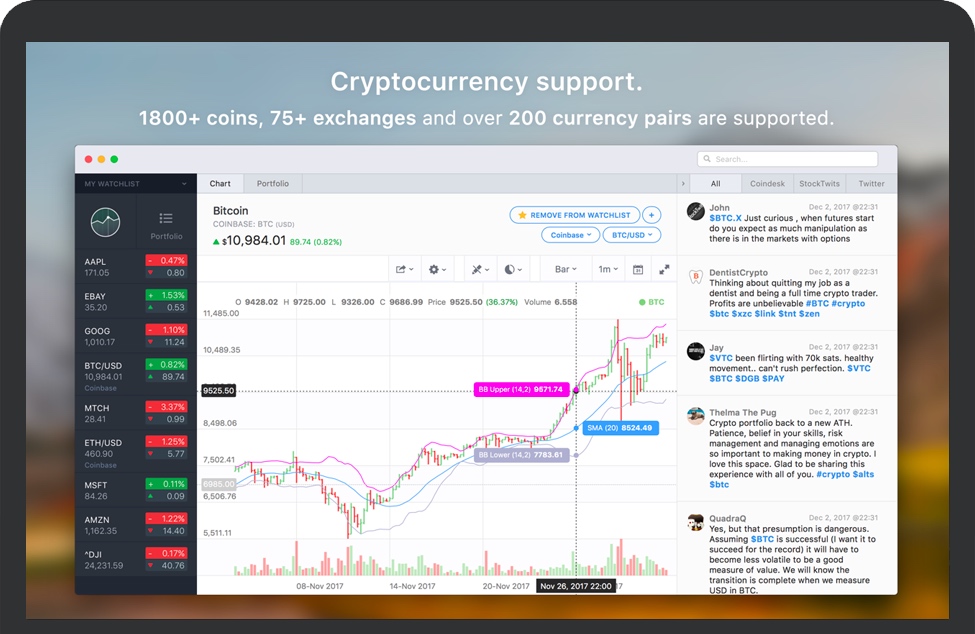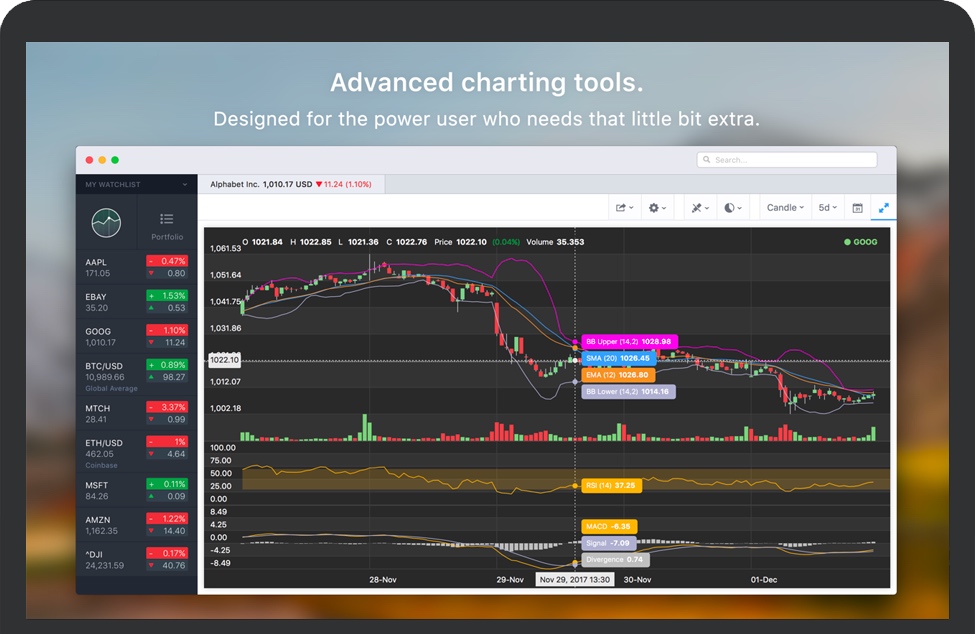 Stockfolio for Mac 是一款适用于macOS的投资应用程序,可让您研究和跟踪有趣的股票和加密货币,从而帮助您提高投资回报。它非常容易设置,并且是管理和跟踪投资组合的最佳方法。