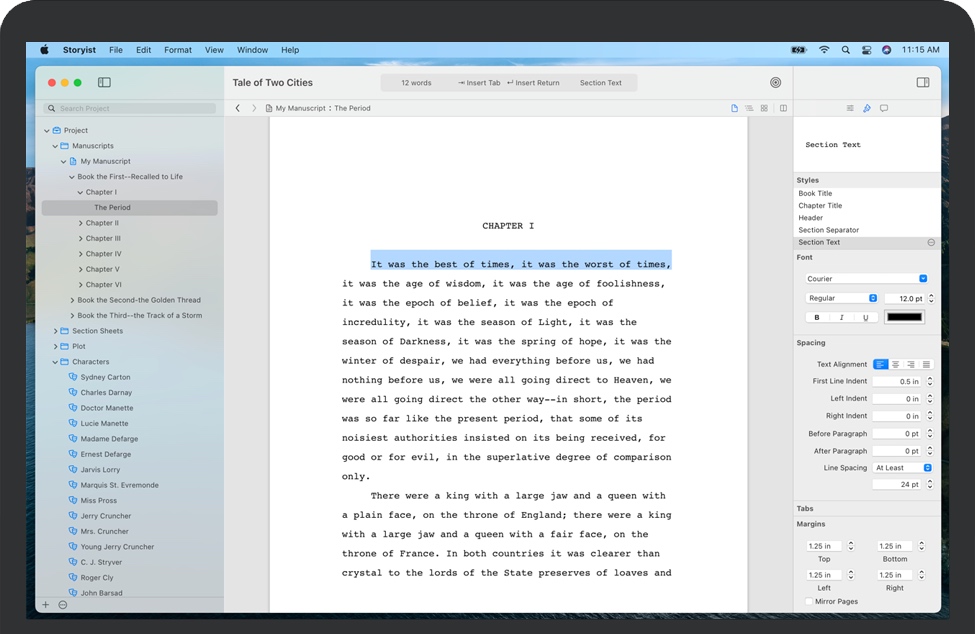 - 制作可提交的手稿和剧本。Storyist提供了一个富文本编辑器,该文本编辑器支持注释,图像,页眉,页脚和样式表,因此您可以创建格式正确的手稿和剧本。Storyist附带手稿和剧本模板,因此您可以专注于写作,而不是格式。