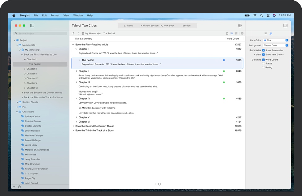 - 使您的所有文章井井有条,易于访问。Storyist组织您的小说手稿,剧本,笔记和其他与项目相关的写作,因此您只需单击几下就可以访问它们。