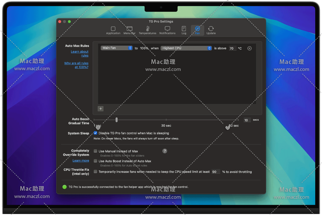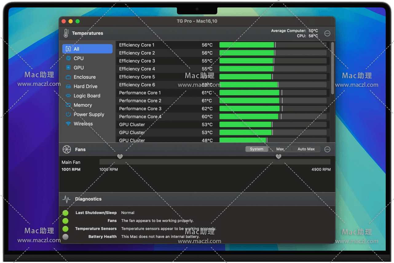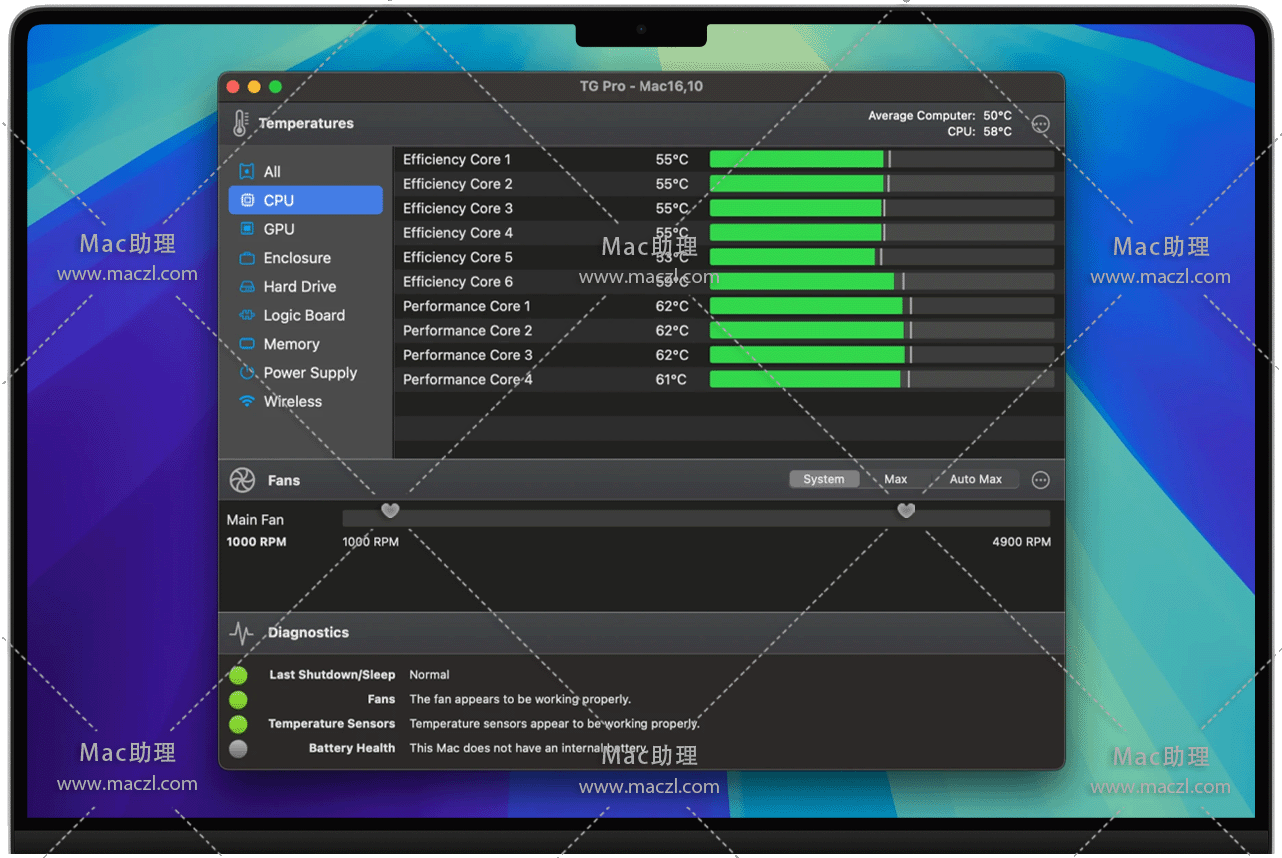 TG Pro甚至会告诉您Mac是否因为过热而关机,或者电池是否需要维修。