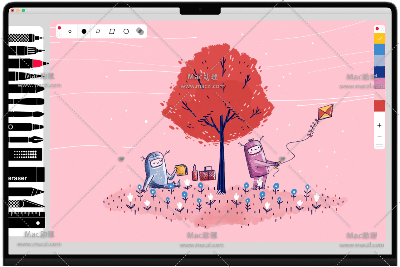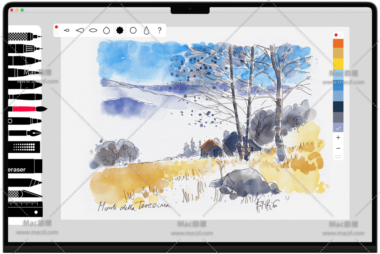 Tayasui Sketches Pro for Mac 是一款强大的绘图程序,可以帮您绘制漂亮的图画,我们坚持不懈地努力,不断改进 Sketches 画笔,给您带来最逼真的绘图和绘画工具。20 多款超真实的工具,极其真实的水彩湿画笔,智能画笔编辑器,颜色拾色器,导入照片,支持手写笔,Sketches 界面在设计时充分考虑了手写笔的需求,所有工具都支持压力,Sketches Pro支持导出为 psd 文件,是 Mac 上功能最全面且非常易于使用的绘图应用。