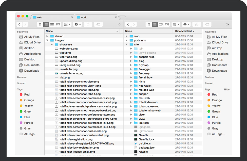 TotalFinder for Mac 是一款多功能、直观的Finder增强插件,专为高级用户和开发人员而设计,使您可以使用双窗格Finder并在Mac的Finder中利用Visor行为。TotalFinder for Mac可以实现Mac系统里多个Finder窗口,具备Finder所有功能的同时,还添加了选项卡,双面板,彩色标签和其他功能,非常实用。