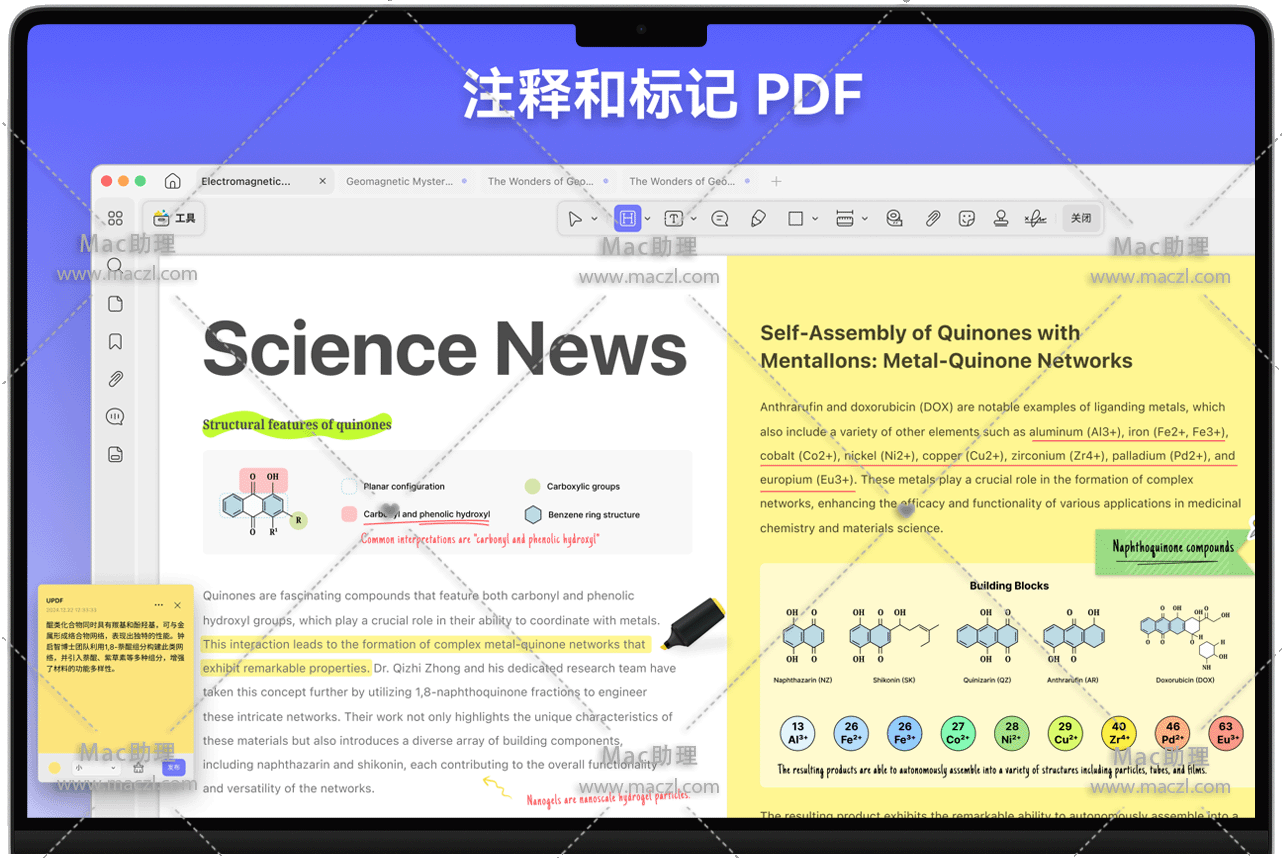 - 如果你需要同时查看多个 PDF 文档,不用在另外的窗口打开阅览它们,你可以在同一窗日多个标签打开预览,这样更简单快捷。