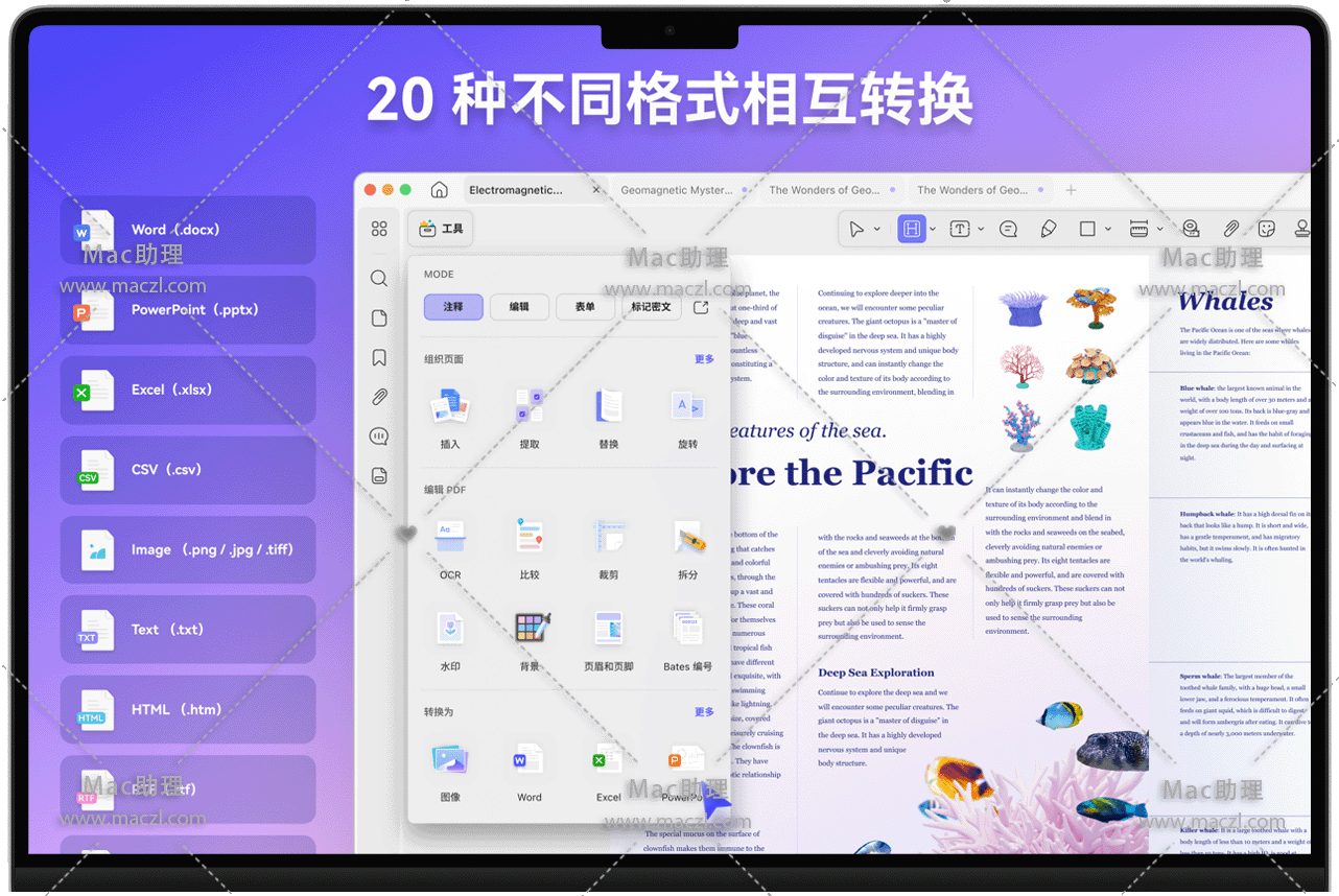 UPDF for Mac 是一款集AI 、阅读、编辑、注释、格式转换、OCR、文档对比等近百项功能于一体的综合型 PDF 编辑软件。具有AI,阅读,编辑,注释、云同步、转换、加密、裁剪、拆分、文档对比等功能。1个账号,全平台都可以使用。UPDF 凭借年轻化高颜值的界面设计让你拥有一个愉快轻松的阅读和办公体验。