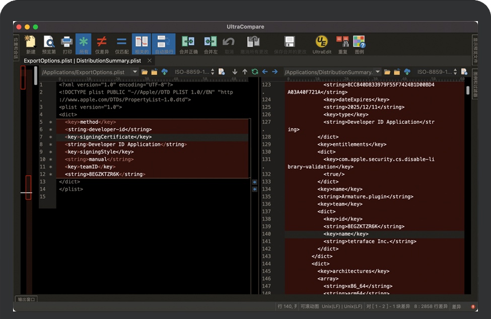 UltraCompare for Mac 是一款文件比较、文件夹比较、文件合并以及文件同步跨平台应用程序。这是同类产品中唯一的集成式编辑/比较解决方案。可以帮助您同时比较,合并和同步最多三个文件或文件夹。此外,UltraCompare应用程序还带有强大的比较引擎,可以更轻松地找到文件和文件夹之间的差异。