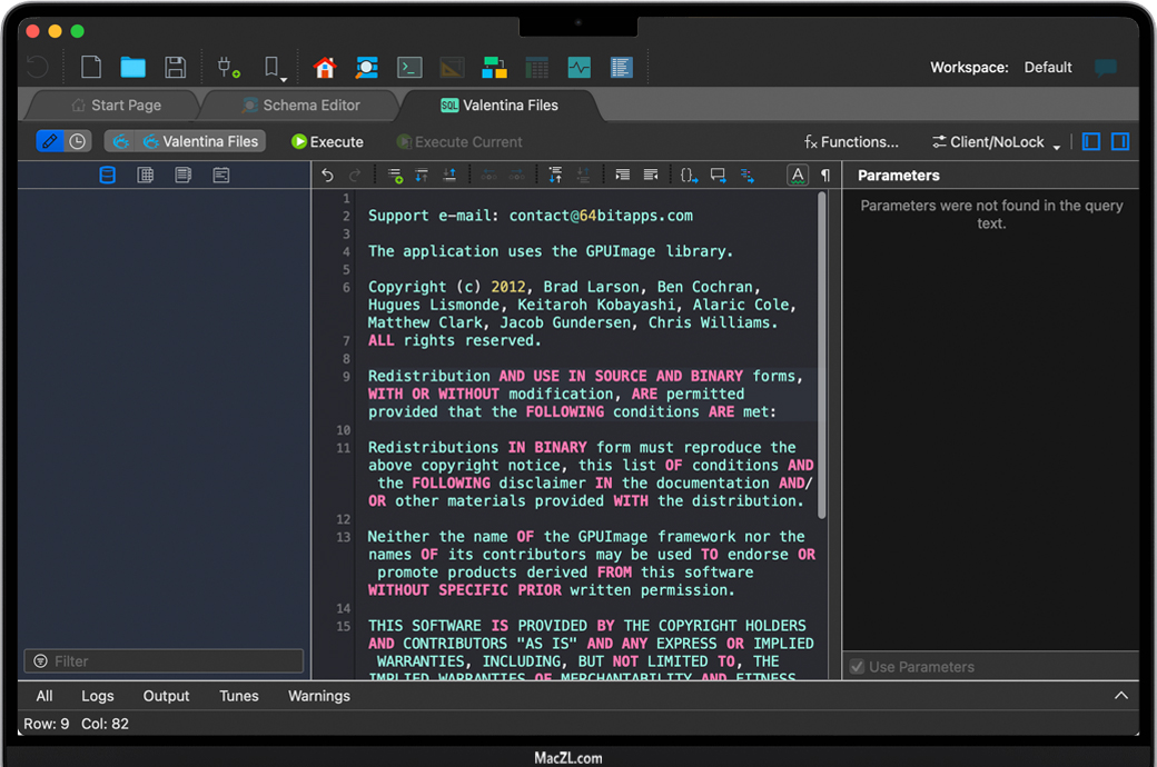 Valentina Studio for Mac 是一款强大的可视化mac数据库管理工具,支持SQLite,MSSQL Server,MariaDB,mySQL,PostgreSQL和Valentina数据库管理。用于数据库架构师,开发人员,DBA甚至最终用户的跨工具,您可以使用不同的图进行数据建模,使用数据库架构和记录,进行SQL开发,进行服务器管理等。