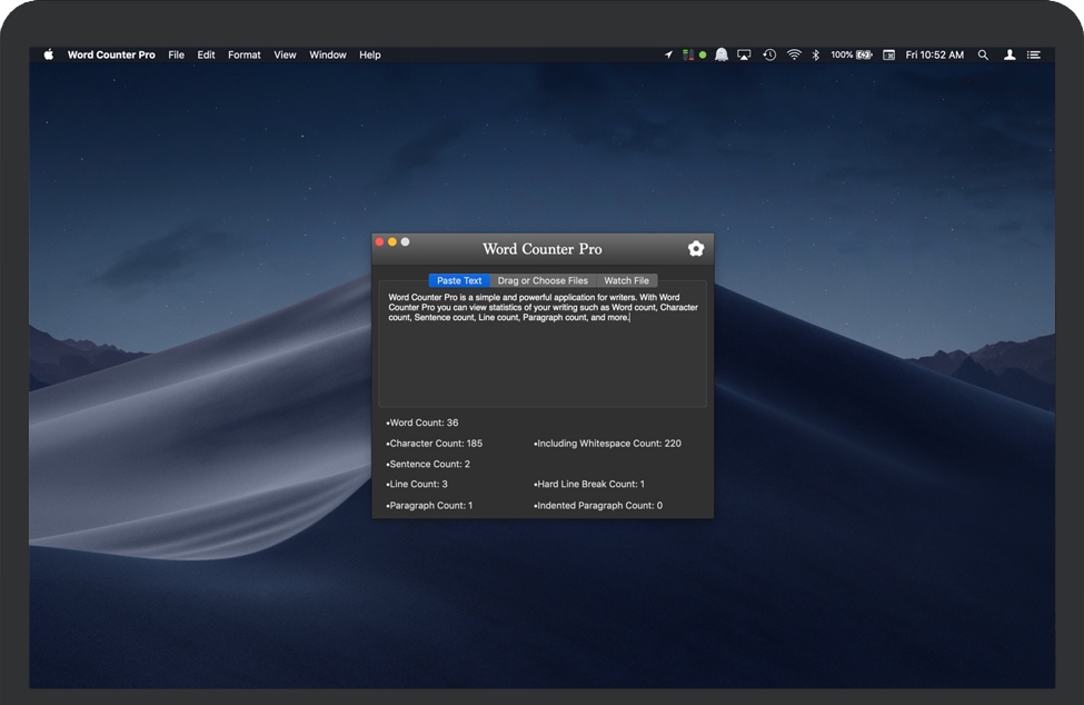 Word Counter Pro允许您以六种不同的方式查看统计信息: