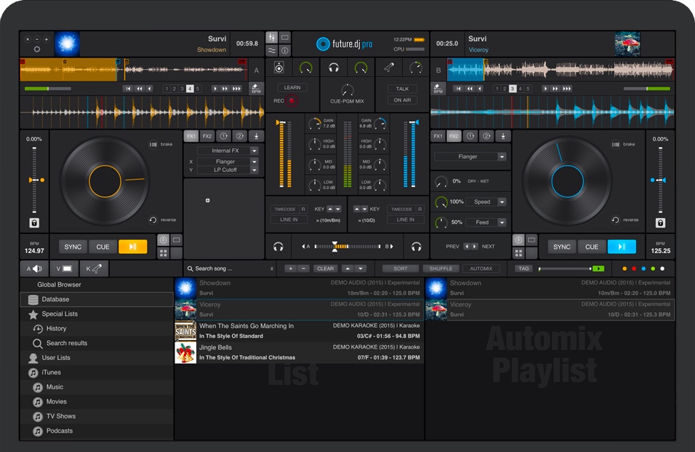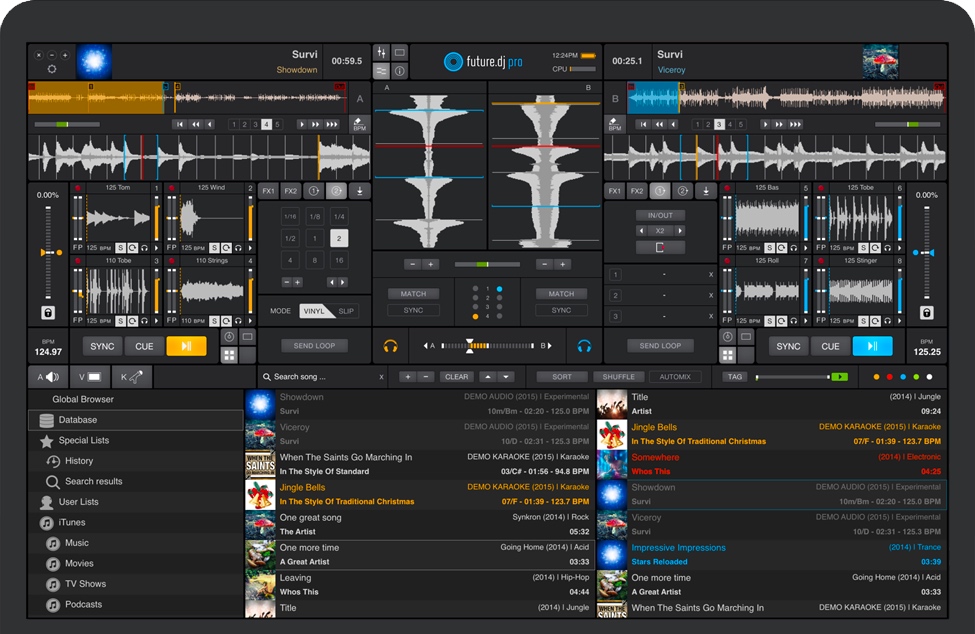 future.dj pro for Mac 具有最新的专业DJ功能,可以满足专业和有抱负的DJ的需求。从喜欢在家中舒适地创建自己的混搭和混音的卧室DJ,到在俱乐部和其他现场表演环境中进行表演的移动DJ和俱乐部/现场DJ,Future.dj pro可以轻松地用于各种DJ。