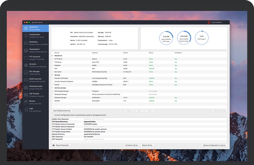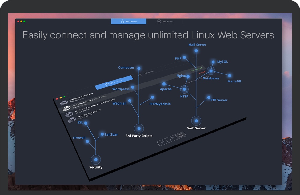 goPanel for Mac是一款非常直观的管理Web服务器的macOS应用程序,易于在您的服务器上安装和配置Apache或Ngin 网络服务器、PHP、MySQL、FTP、域、免费SSL证书和电子邮件。goPanel可让您轻松连接和管理无限的Linux 服务器。这是您在基于Unix的服务器上安装的用于Web托管的现有控制面板软件的替代方案。
