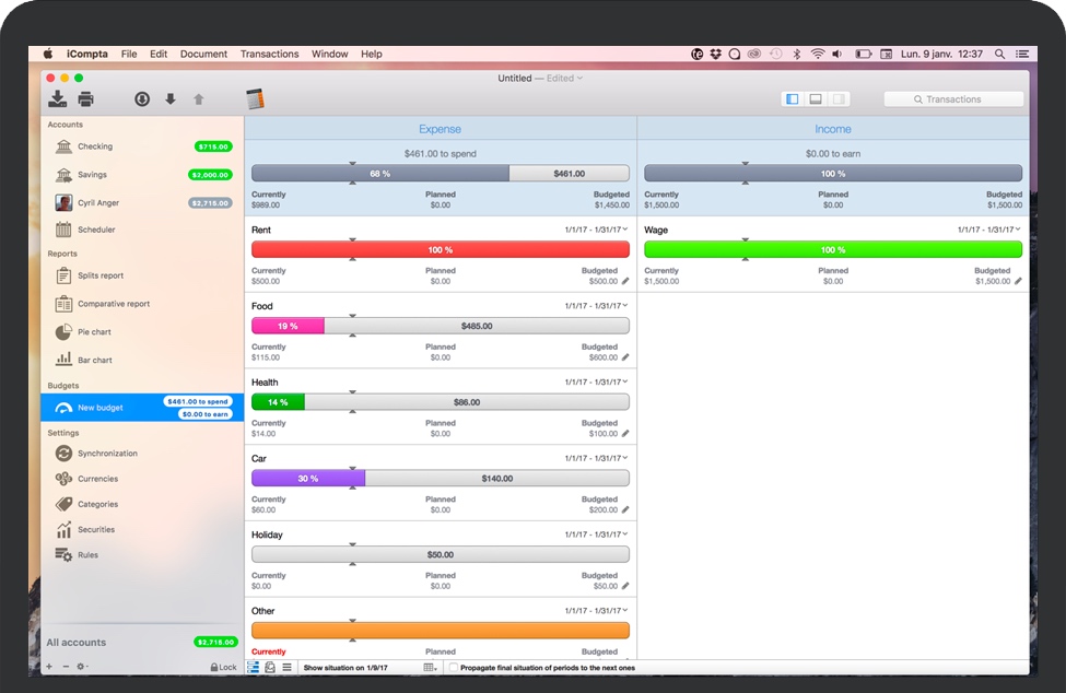 iCompta for Mac 是一款可让您轻松管理帐户的应用程序。跟踪收入和支出,安排帐单,与预算保持一致,并通过精美的图表最终了解所有资金的去向。