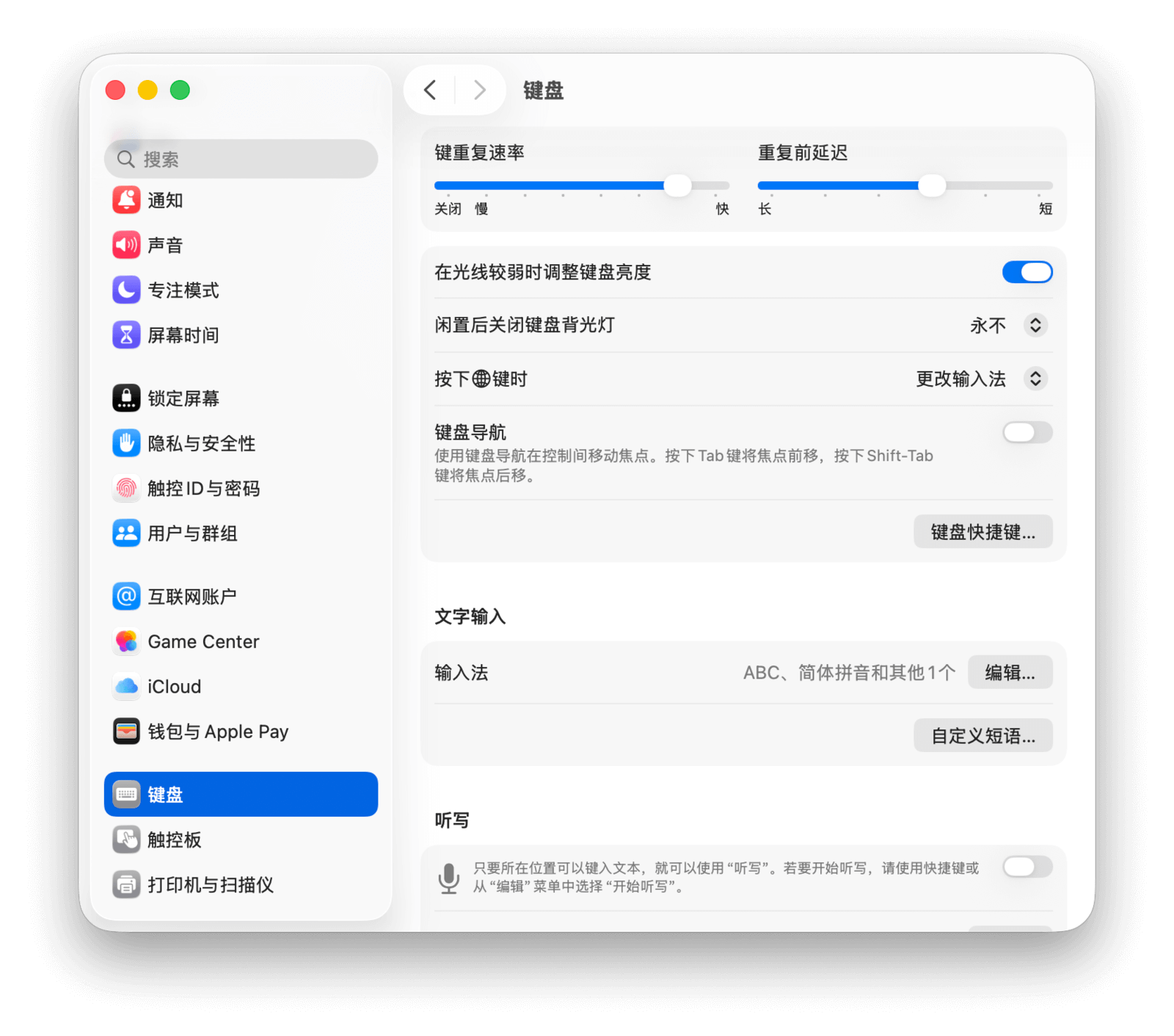 你可以在「系统设置 > 键盘」中对键盘进行全局调整。