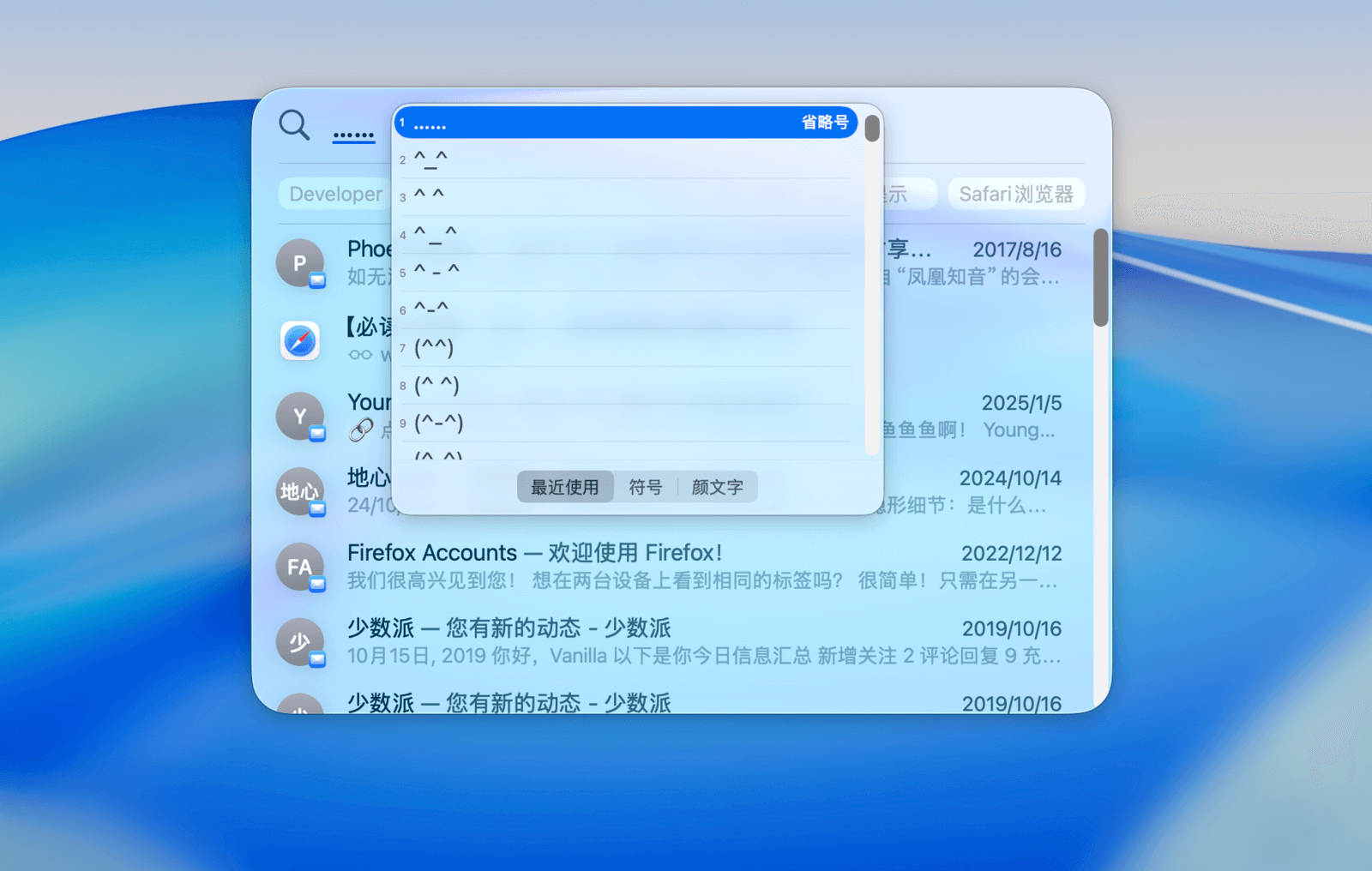 若要查找或输入特殊符号,可以按 ⌃Control+⌘Command+空格键,调出系统的「字符检视器」。